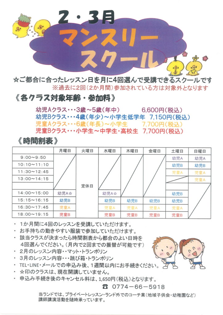 走る・跳ぶ・回るなど幼児期に必ず経験しておく基本動作をオリジナルプログラムでマスターすることにより、その後の運動能力(他のスポーツにおいても)の土台を築きます。ランドでは、ボールを使いドッジボールなどで楽しみながら身のこなしをマスターするプログラムなどを多用するのが特長です。