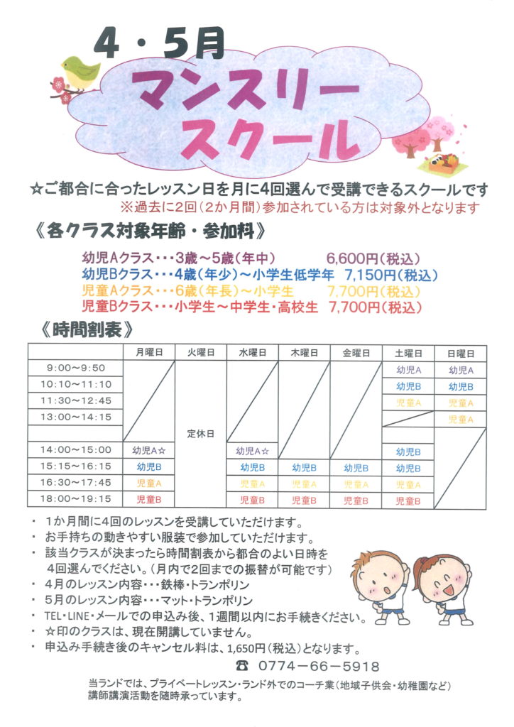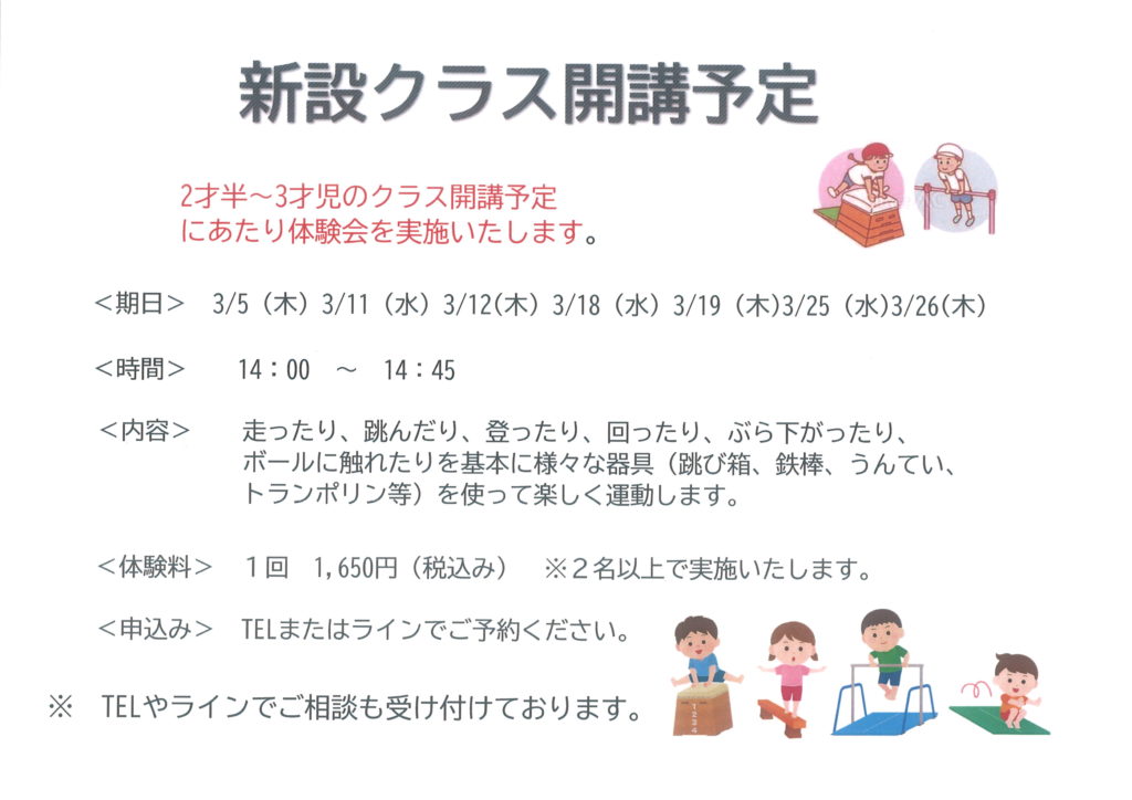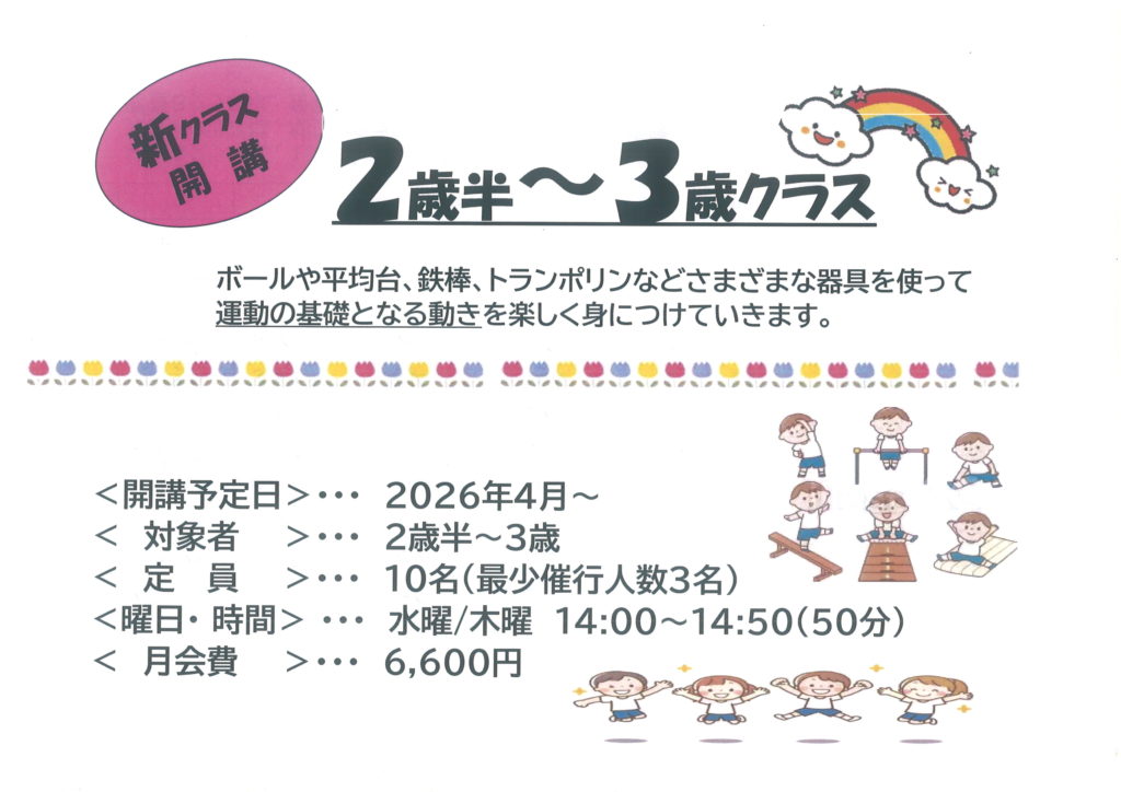 【4歳(年少)~小学生低学年】クラスは60分